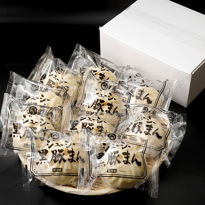人気の豚まん10個入り。 袋に入ったまま、電子レンジで温められます。